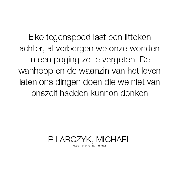 Elke tegenspoed laat een litteken achter, al verbergen we onze wonden in een poging ze te vergeten. De wanhoop en de waanzin van het leven laten ons dingen doen die we niet van onszelf hadden kunnen denken