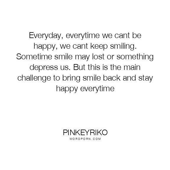 Everyday, everytime we cant be happy, we cant keep smiling. Sometime smile may lost or something depress us. But this is the main challenge to bring smile back and stay happy everytime