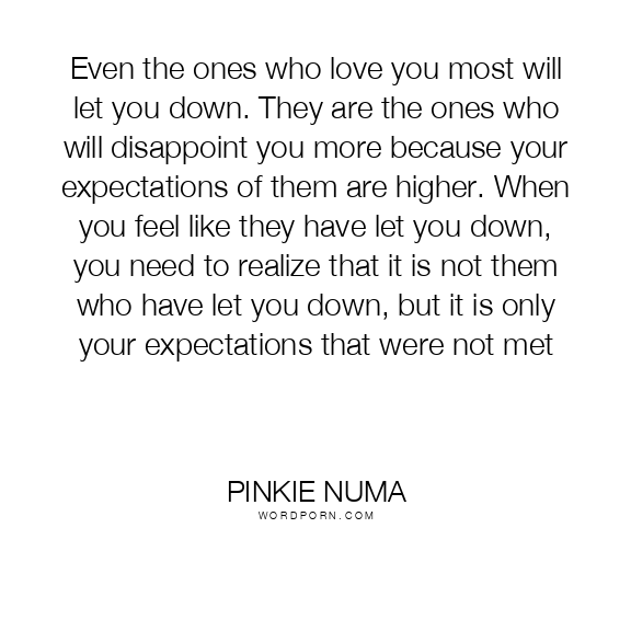 Even the ones who love you most will let you down. They are the ones who will disappoint you more because your expectations of them are higher. When you feel like they have let you down, you need to realize that it is not them who have let you down, but it is only your expectations that were not met