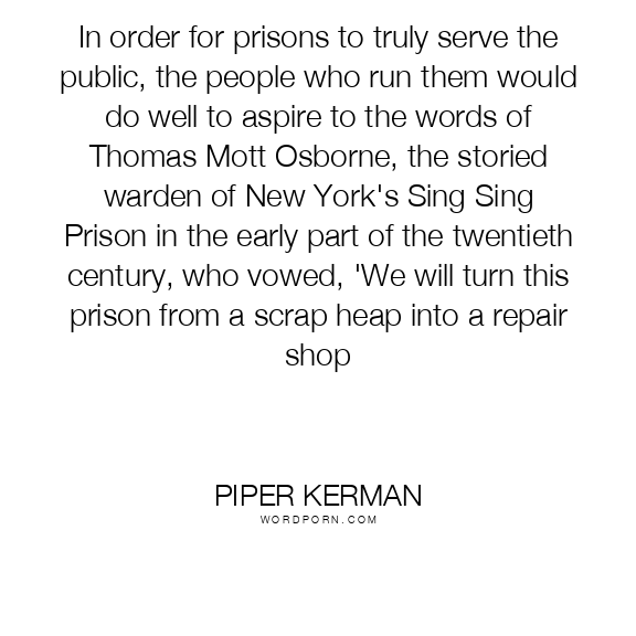 In order for prisons to truly serve the public, the people who run them would do well to aspire to the words of Thomas Mott Osborne, the storied warden of New York's Sing Sing Prison in the early part of the twentieth century, who vowed, 'We will turn this prison from a scrap heap into a repair shop