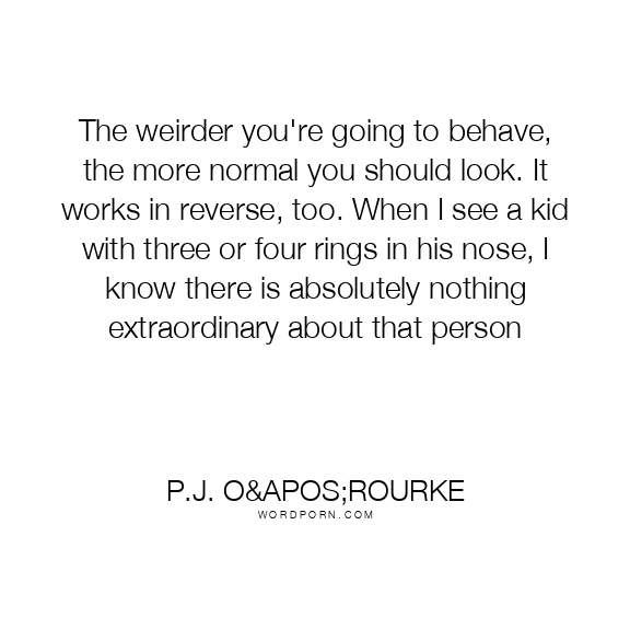 The weirder you're going to behave, the more normal you should look. It works in reverse, too. When I see a kid with three or four rings in his nose, I know there is absolutely nothing extraordinary about that person