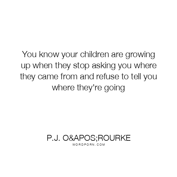 You know your children are growing up when they stop asking you where they came from and refuse to tell you where they're going