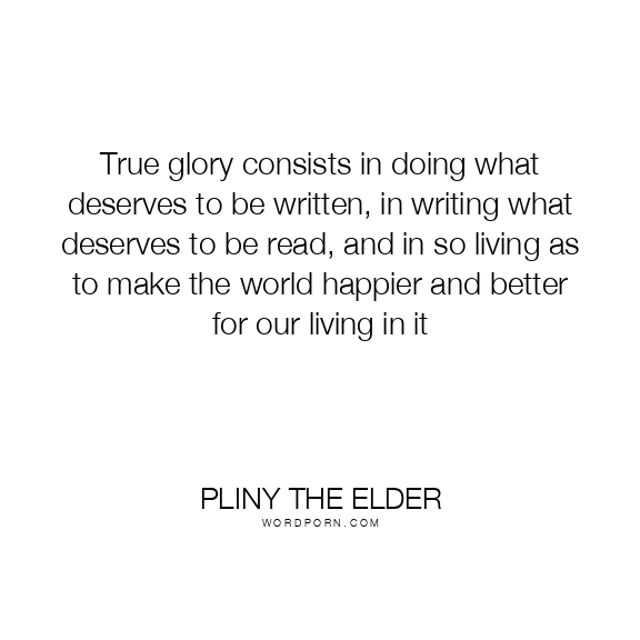 True glory consists in doing what deserves to be written, in writing what deserves to be read, and in so living as to make the world happier and better for our living in it