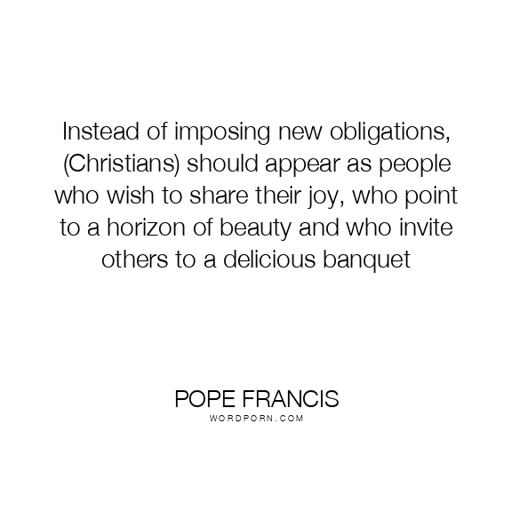 Instead of imposing new obligations, (Christians) should appear as people who wish to share their joy, who point to a horizon of beauty and who invite others to a delicious banquet