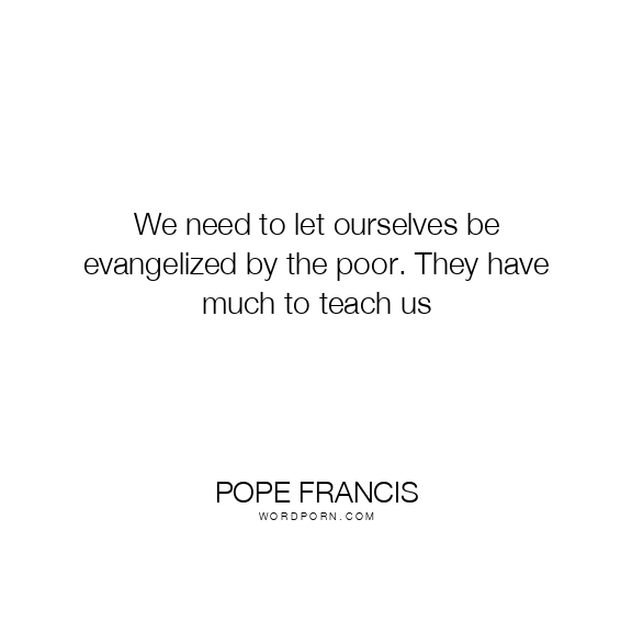 We need to let ourselves be evangelized by the poor. They have much to teach us