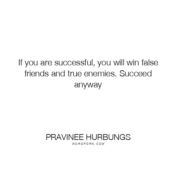 If you are successful, you will win false friends and true enemies. Succeed anyway