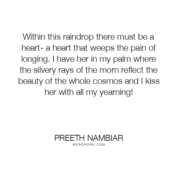 Within this raindrop there must be a heart- a heart that weeps the pain of longing. I have her in my palm where the silvery rays of the morn reflect the beauty of the whole cosmos and I kiss her with all my yearning!