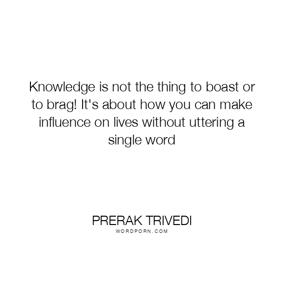 Knowledge is not the thing to boast or to brag! It's about how you can make influence on lives without uttering a single word