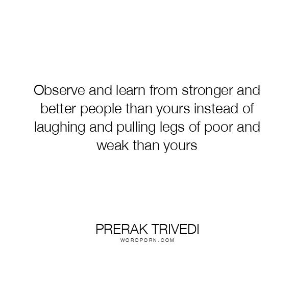 Observe and learn from stronger and better people than yours instead of laughing and pulling legs of poor and weak than yours