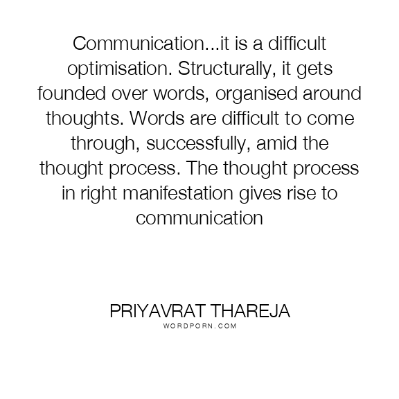 Communication...it is a difficult optimisation. Structurally, it gets founded over words, organised around thoughts. Words are difficult to come through, successfully, amid the thought process. The thought process in right manifestation gives rise to communication