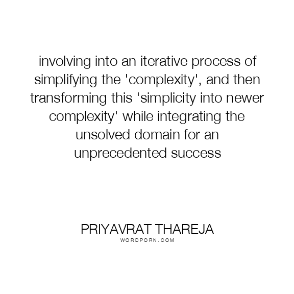 involving into an iterative process of simplifying the 'complexity', and then transforming this 'simplicity into newer complexity' while integrating the unsolved domain for an unprecedented success