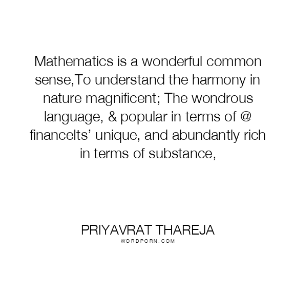 Mathematics is a wonderful common sense,To understand the harmony in nature magnificent; The wondrous language, & popular in terms of @ financeIts’ unique, and abundantly rich in terms of substance,