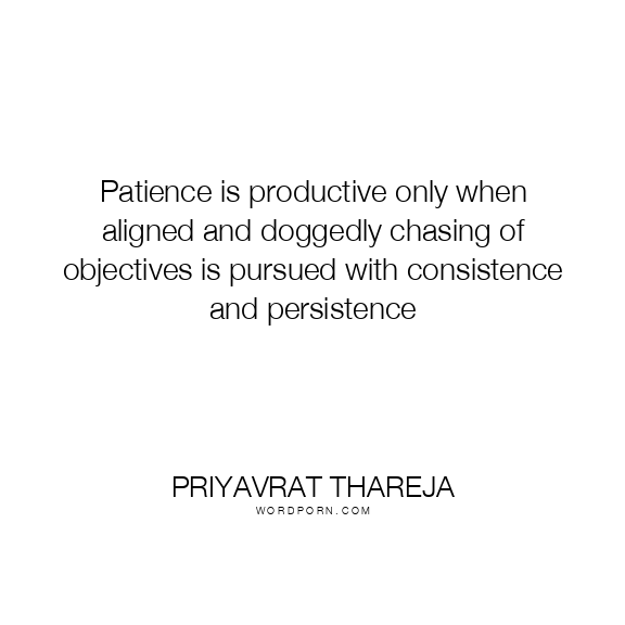 Patience is productive only when aligned and doggedly chasing of objectives is pursued with consistence and persistence
