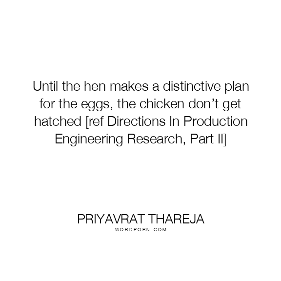 Until the hen makes a distinctive plan for the eggs, the chicken don’t get hatched [ref Directions In Production Engineering Research, Part II]