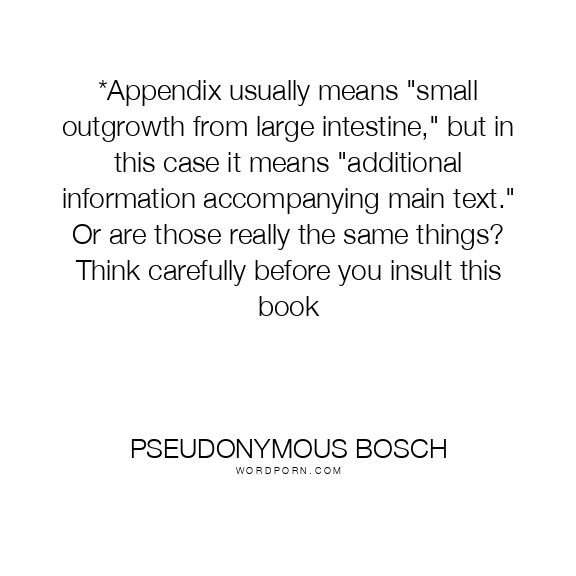 *Appendix usually means "small outgrowth from large intestine," but in this case it means "additional information accompanying main text." Or are those really the same things? Think carefully before you insult this book