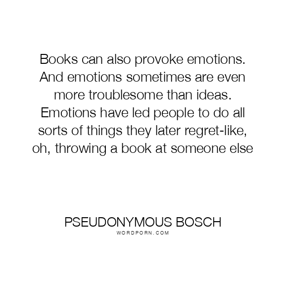 Books can also provoke emotions. And emotions sometimes are even more troublesome than ideas. Emotions have led people to do all sorts of things they later regret-like, oh, throwing a book at someone else