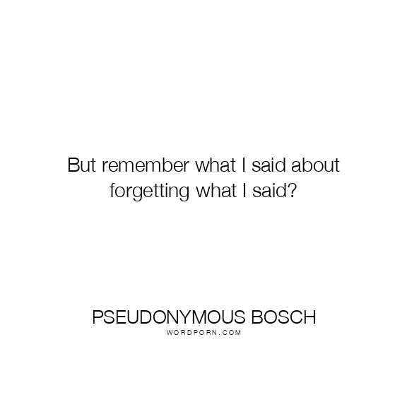 But remember what I said about forgetting what I said?