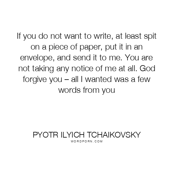 If you do not want to write, at least spit on a piece of paper, put it in an envelope, and send it to me. You are not taking any notice of me at all. God forgive you – all I wanted was a few words from you