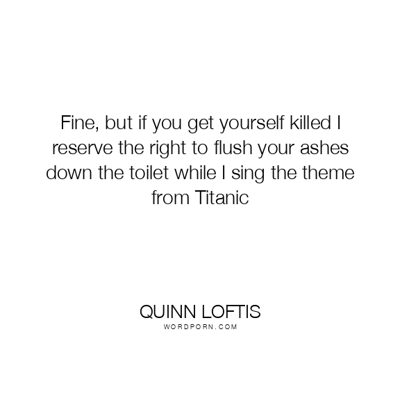Fine, but if you get yourself killed I reserve the right to flush your ashes down the toilet while I sing the theme from Titanic