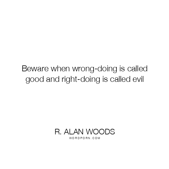 R. Alan Woods quote. Beware when wrong-doing is called good and right-doing is called evil