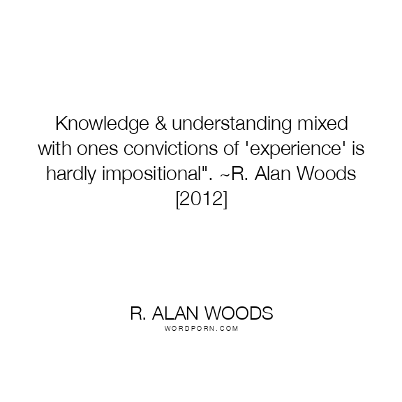 R. Alan Woods quote. Knowledge & understanding mixed with ones convictions of 'experience' is hardly impositional