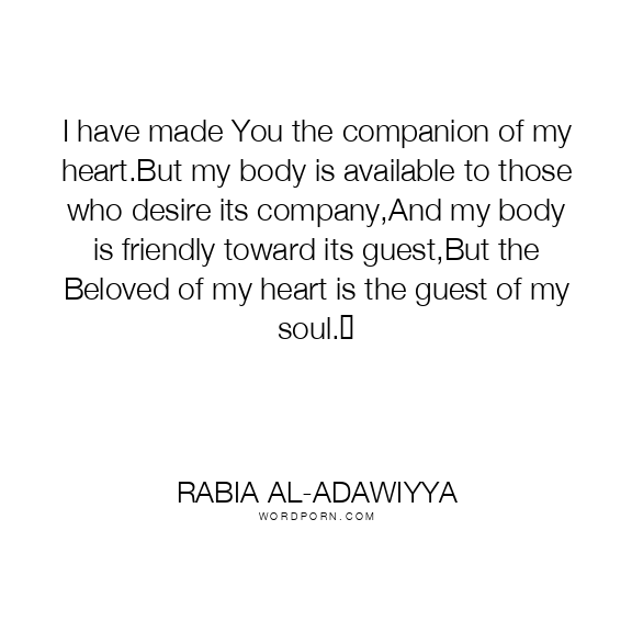 I have made You the companion of my heart.But my body is available to those who desire its company,And my body is friendly toward its guest,But the Beloved of my heart is the guest of my soul.