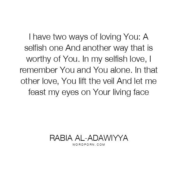 I have two ways of loving You: A selfish one And another way that is worthy of You. In my selfish love, I remember You and You alone. In that other love, You lift the veil And let me feast my eyes on Your living face
