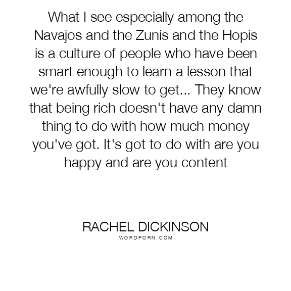 What I see especially among the Navajos and the Zunis and the Hopis is a culture of people who have been smart enough to learn a lesson that we're awfully slow to get... They know that being rich doesn't have any damn thing to do with how much money you've got. It's got to do with are you happy and are you content