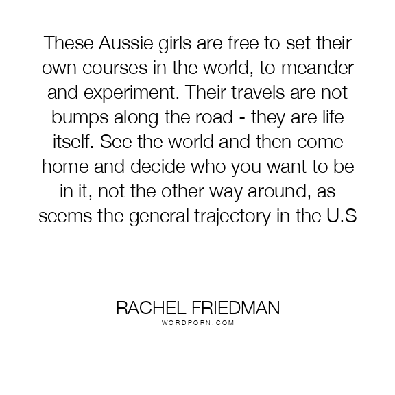 These Aussie girls are free to set their own courses in the world, to meander and experiment. Their travels are not bumps along the road - they are life itself. See the world and then come home and decide who you want to be in it, not the other way around, as seems the general trajectory in the U.S