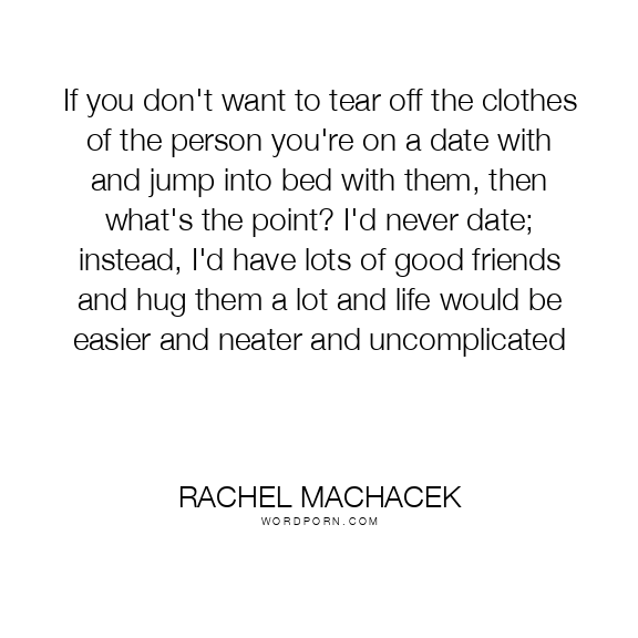 If you don't want to tear off the clothes of the person you're on a date with and jump into bed with them, then what's the point? I'd never date; instead, I'd have lots of good friends and hug them a lot and life would be easier and neater and uncomplicated