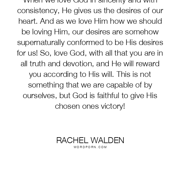 When we love God in sincerity and with consistency, He gives us the desires of our heart. And as we love Him how we should be loving Him, our desires are somehow supernaturally conformed to be His desires for us! So, love God, with all that you are in all truth and devotion, and He will reward you according to His will. This is not something that we are capable of by ourselves, but God is faithful to give His chosen ones victory!