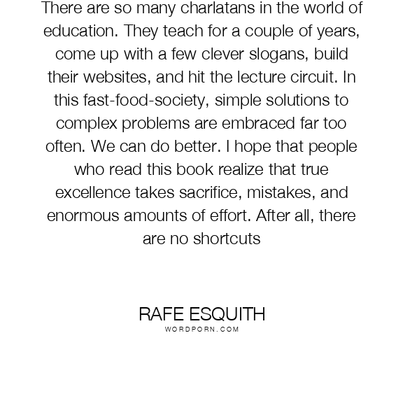 There are so many charlatans in the world of education. They teach for a couple of years, come up with a few clever slogans, build their websites, and hit the lecture circuit. In this fast-food-society, simple solutions to complex problems are embraced far too often. We can do better. I hope that people who read this book realize that true excellence takes sacrifice, mistakes, and enormous amounts of effort. After all, there are no shortcuts