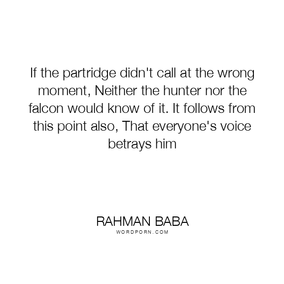 If the partridge didn't call at the wrong moment, Neither the hunter nor the falcon would know of it. It follows from this point also, That everyone's voice betrays him
