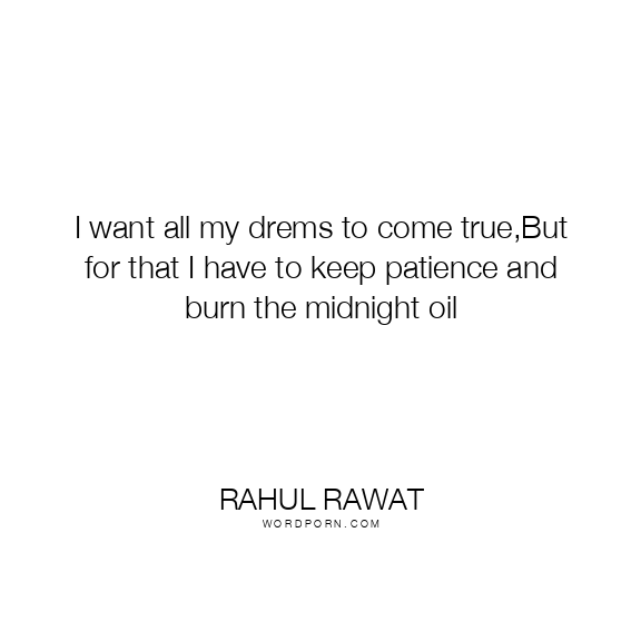 I want all my drems to come true,But for that I have to keep patience and burn the midnight oil