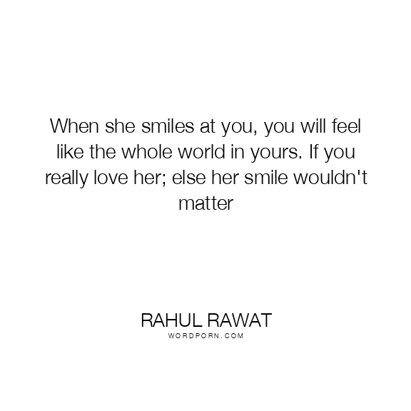 When she smiles at you, you will feel like the whole world in yours. If you really love her; else her smile wouldn't matter