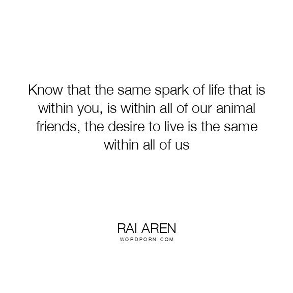 Know that the same spark of life that is within you, is within all of our animal friends, the desire to live is the same within all of us