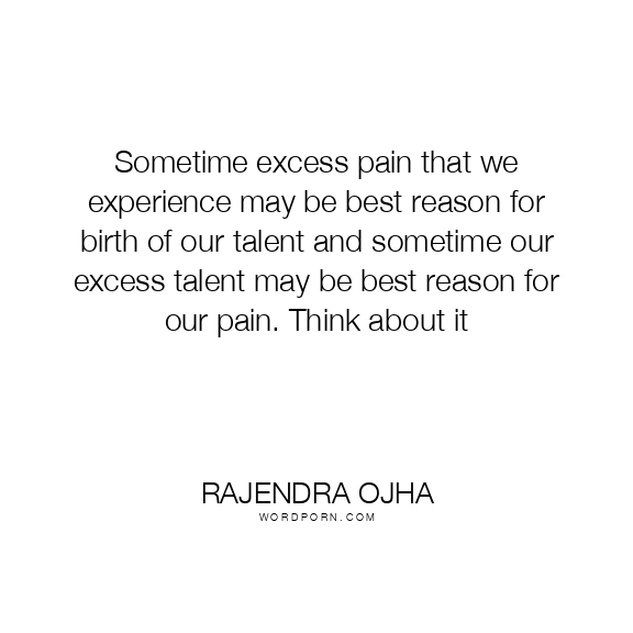 Sometime excess pain that we experience may be best reason for birth of our talent and sometime our excess talent may be best reason for our pain. Think about it