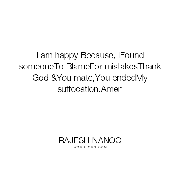 I am happy Because, IFound someoneTo BlameFor mistakesThank God &You mate,You endedMy suffocation.Amen