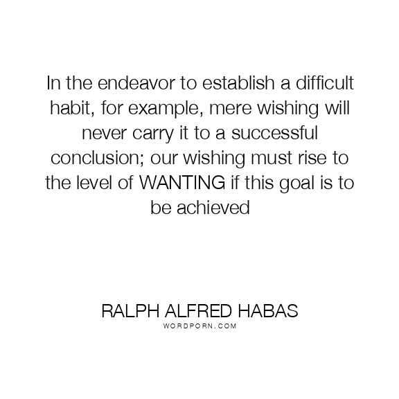 In the endeavor to establish a difficult habit, for example, mere wishing will never carry it to a successful conclusion; our wishing must rise to the level of WANTING if this goal is to be achieved
