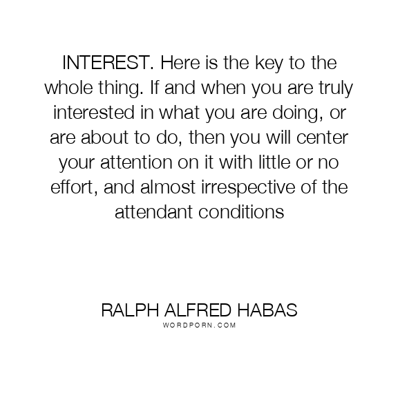 INTEREST. Here is the key to the whole thing. If and when you are truly interested in what you are doing, or are about to do, then you will center your attention on it with little or no effort, and almost irrespective of the attendant conditions