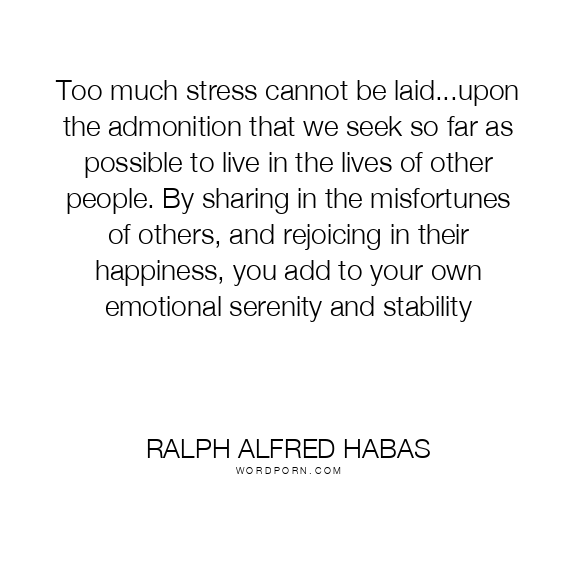 Too much stress cannot be laid...upon the admonition that we seek so far as possible to live in the lives of other people. By sharing in the misfortunes of others, and rejoicing in their happiness, you add to your own emotional serenity and stability