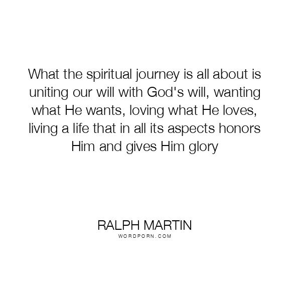 What the spiritual journey is all about is uniting our will with God's will, wanting what He wants, loving what He loves, living a life that in all its aspects honors Him and gives Him glory