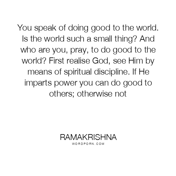 You speak of doing good to the world. Is the world such a small thing? And who are you, pray, to do good to the world? First realise God, see Him by means of spiritual discipline. If He imparts power you can do good to others; otherwise not