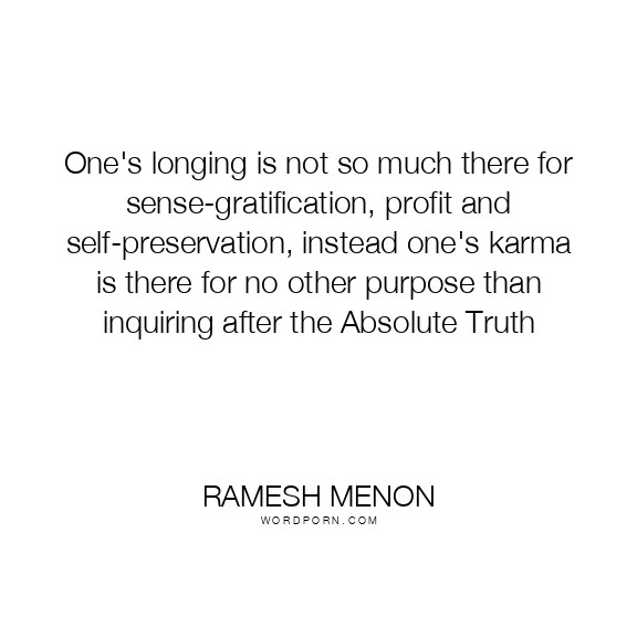 One's longing is not so much there for sense-gratification, profit and self-preservation, instead one's karma is there for no other purpose than inquiring after the Absolute Truth