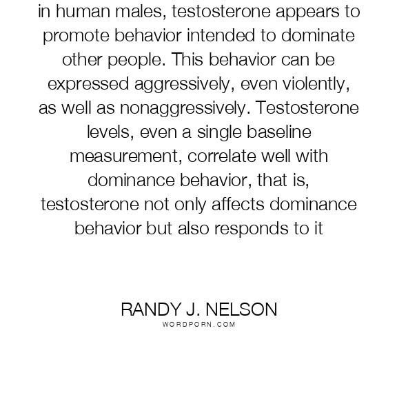 in human males, testosterone appears to promote behavior intended to dominate other people. This behavior can be expressed aggressively, even violently, as well as nonaggressively. Testosterone levels, even a single baseline measurement, correlate well with dominance behavior, that is, testosterone not only affects dominance behavior but also responds to it