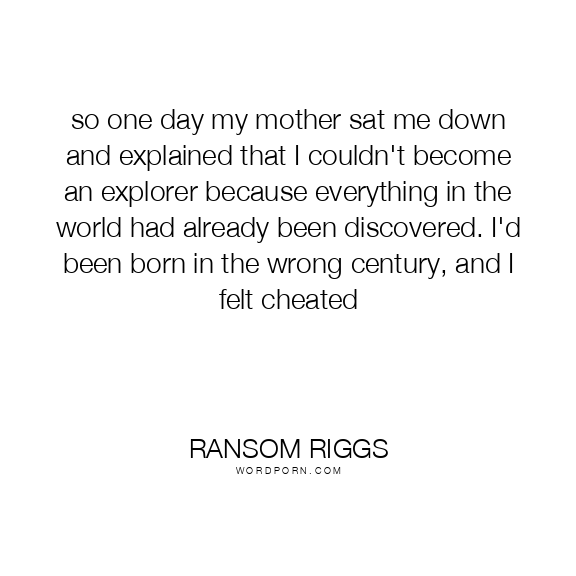 so one day my mother sat me down and explained that I couldn't become an explorer because everything in the world had already been discovered. I'd been born in the wrong century, and I felt cheated