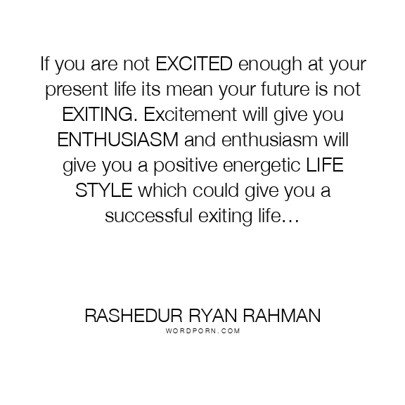 If you are not EXCITED enough at your present life its mean your future is not EXITING. Excitement will give you ENTHUSIASM and enthusiasm will give you a positive energetic LIFE STYLE which could give you a successful exiting life…