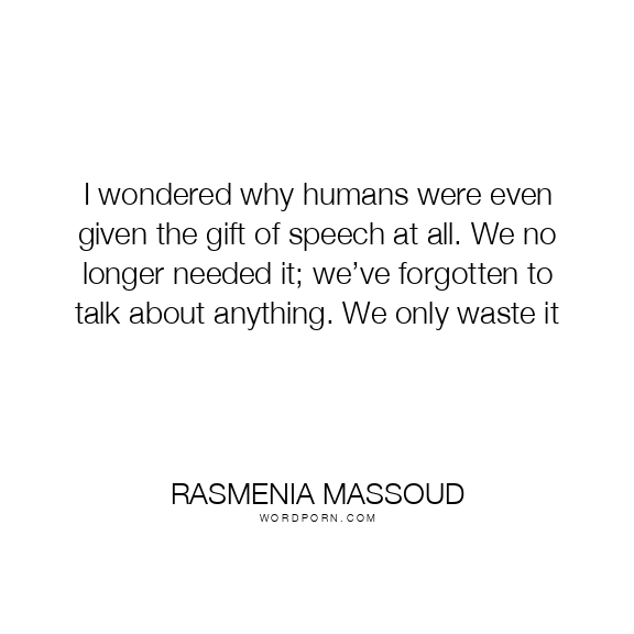 I wondered why humans were even given the gift of speech at all. We no longer needed it; we’ve forgotten to talk about anything. We only waste it