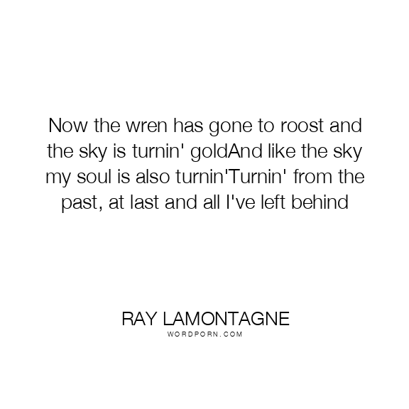 Now the wren has gone to roost and the sky is turnin' goldAnd like the sky my soul is also turnin'Turnin' from the past, at last and all I've left behind