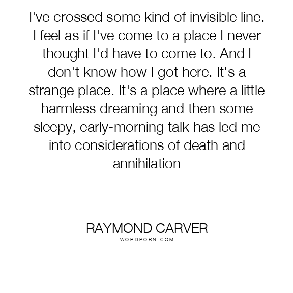 I've crossed some kind of invisible line. I feel as if I've come to a place I never thought I'd have to come to. And I don't know how I got here. It's a strange place. It's a place where a little harmless dreaming and then some sleepy, early-morning talk has led me into considerations of death and annihilation